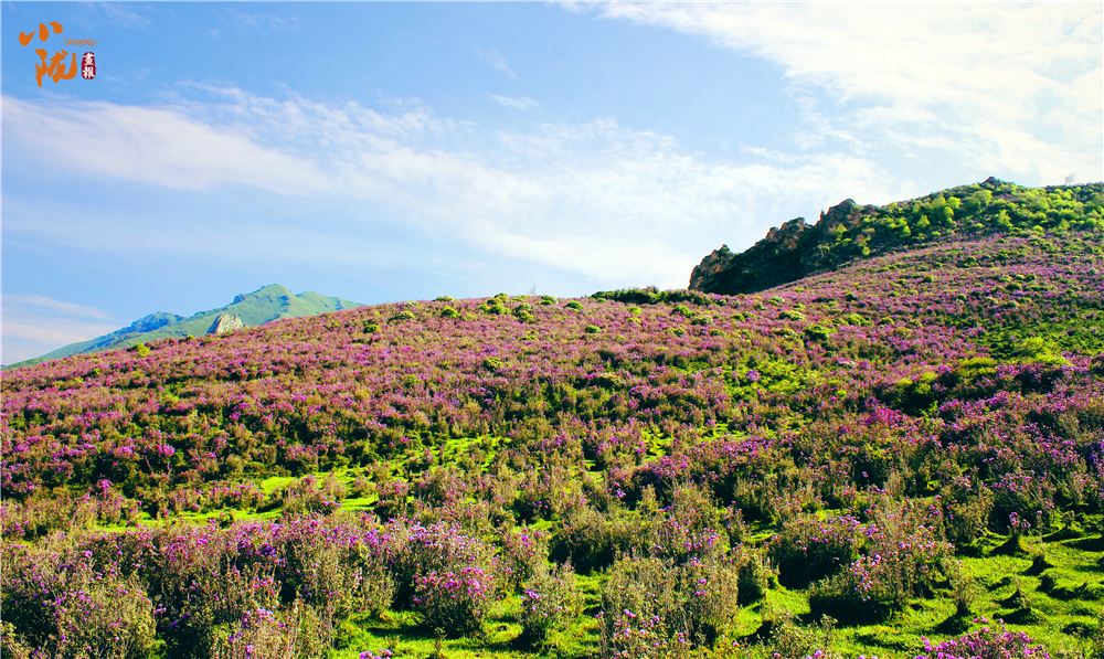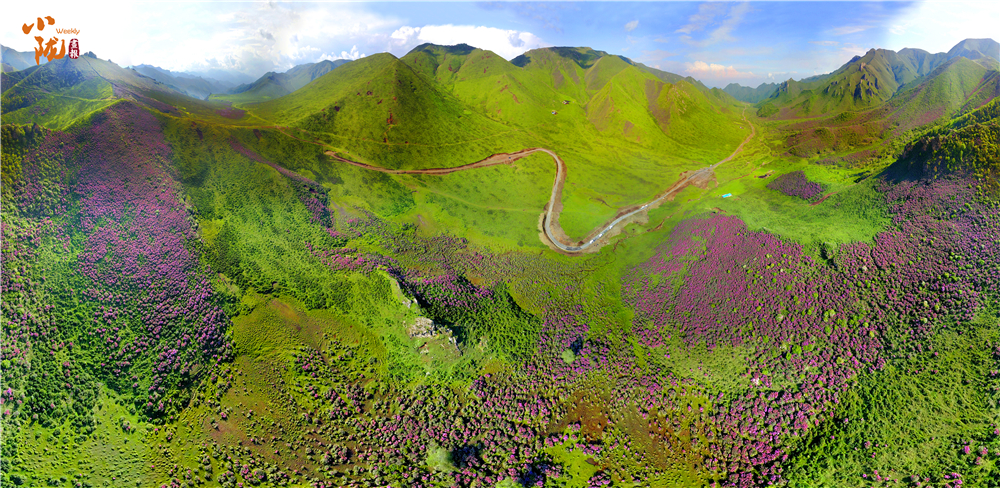 如火如荼綻放的紫色花朵是千里香杜鵑花,在當地又被稱為枇杷花,每年五、六月份,正值高山杜鵑怒放,形態各異,色彩斑斕,形成了壯觀、獨特的高山花海景觀。