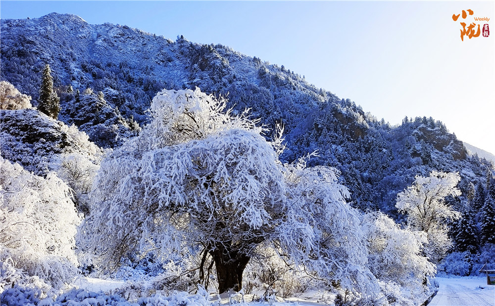 冰雪包裹的枝條仿佛玉樹銀花,千姿百態,如同 “千樹萬樹梨花開” 。