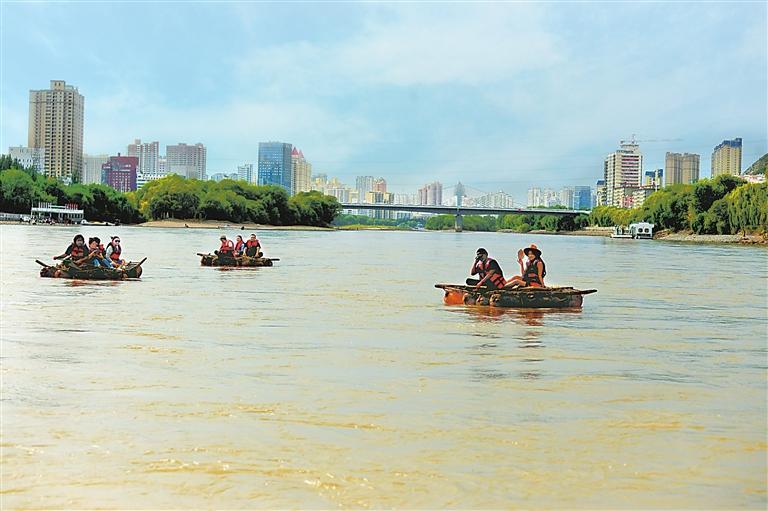 入秋以來,蘭州文旅市場持續火熱,不少游客前來旅游。9月14日,游客在黃河蘭州段乘著羊皮筏子漂流黃河,感受與母親河的“零距離”接觸。