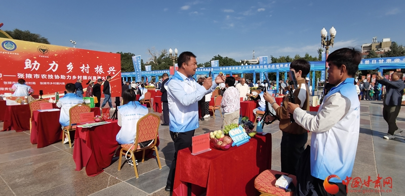 品味張掖好物,助力鄉村振興。在全國科普日甘肅主場活動之一的張掖市農技協助力鄉村振興直播大賽現場,臨澤縣奮進葡萄種植農民專業合作社負責人賈宏福運用手中的“新農具”,通過網絡直播的形式,向網友們推介自產的葡萄,并向大家分享科技助農為他帶來的喜悅。