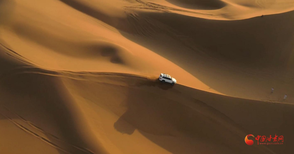 在金塔,同樣受游客歡迎的還有弱水環流景區,在這里綠洲與黃沙相伴,藍天白云相映、水沙共生,是觀光旅游的絕佳勝地。一望無垠的沙丘輪廓清晰、層次分明,丘脊線平滑流暢,迎風面沙坡似水,背風面流沙如瀉,場面蔚為壯觀。車行其間,好像波峰浪谷之間的一葉小舟,一會兒到了浪尖,一會兒又跌進谷底,驚險刺激又酣暢淋漓,沙漠沖沙、沙漠越野、沙漠觀光備受戶外愛好者的青睞。