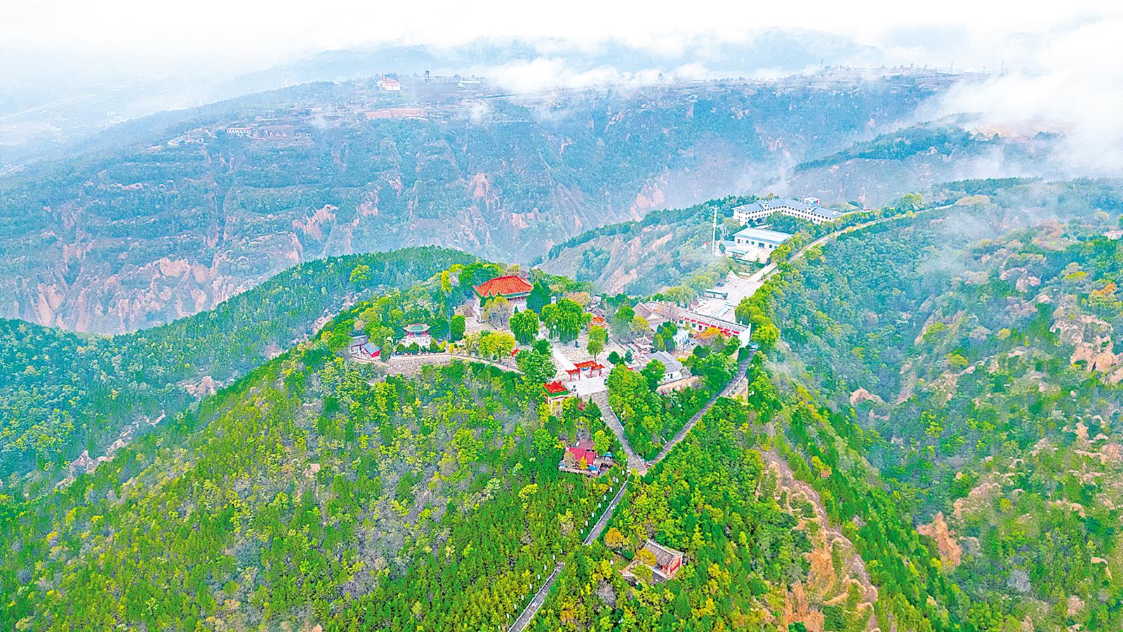 10月18日,慶城縣周祖陵景區滿山秋葉色彩斑斕,山巒之間云霧繚繞,呈現出一幅秋日醉人畫卷。