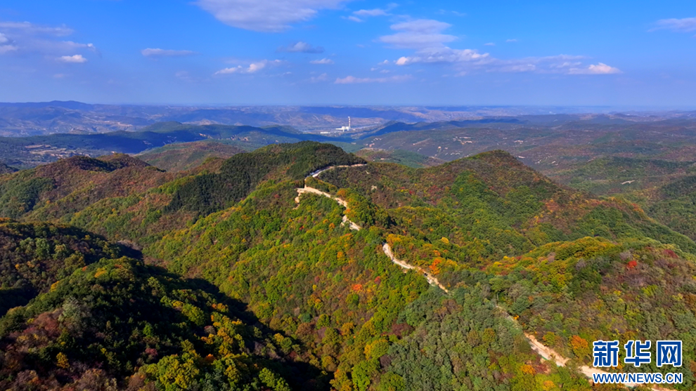 深秋時節,甘肅省平涼市崇信縣的唐帽山層林盡染,群山疊彩,勾勒出一幅絢麗多姿的美景圖。(圖片:高亮 文字:關改琴)