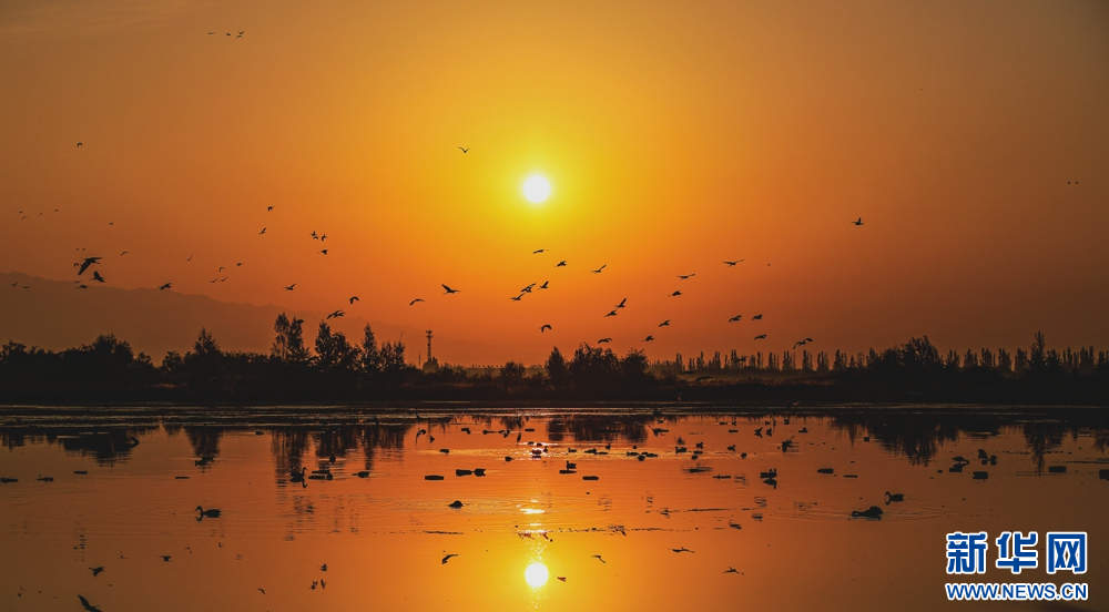 近日,在甘肅省張掖國(guó)家濕地公園,成群的白鷺迎著朝陽(yáng)悠然自得地飛翔、覓食、嬉戲,構(gòu)成了一幅朝陽(yáng)伴鷺飛的美麗畫卷。新華網(wǎng)發(fā)(陳禮 攝)