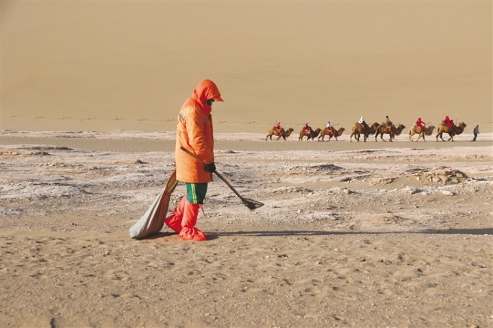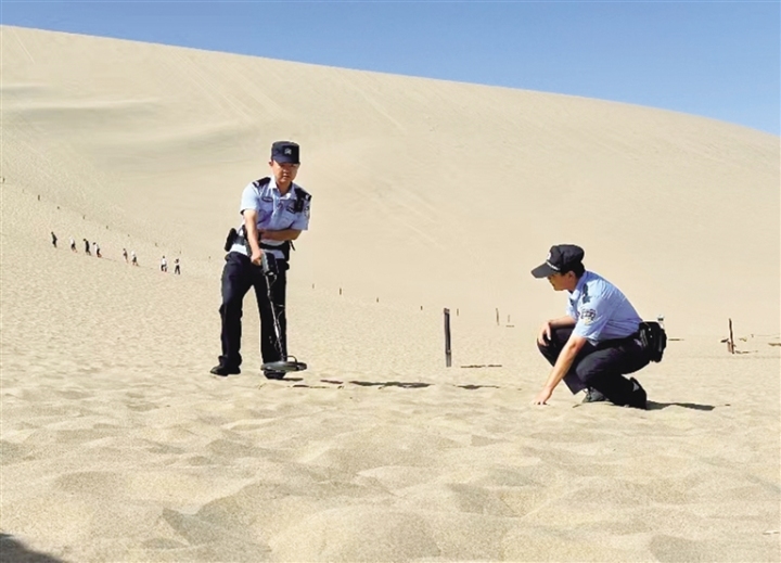 在鳴沙山·月牙泉景區,負責執勤的景區派出所民警,不僅維護景區及周邊的治安,也為游客提供熱心周到的服務,僅在沙漠中為游客尋找的手機每年就有100余部,尋找返還隨身物品200余件,用“5A”警務服務5A景區。