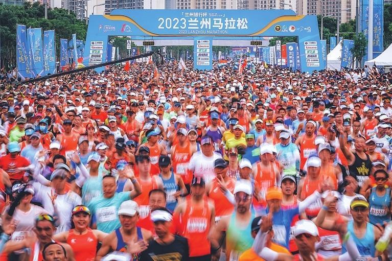2023年6月11日,由中國田徑協會認證,甘肅省體育局、蘭州市人民政府主辦的2023蘭州馬拉松在蘭州奧體中心鳴槍開賽,共有來自俄羅斯、法國等17個國家以及全國各地的4萬名選手參賽。作為展示黃河文化和城市魅力的重要平臺,“蘭馬”自2011年創辦以來,不斷在繼承中創新、在創新中發展,如今已發展成為馬拉松“雙金賽事”。甘肅省田徑協會成立后,全省各地馬拉松系列賽事不斷豐富內涵、優化組織、提高品質,努力打造更具特色、更具影響力的甘肅馬拉松“品牌賽事”。