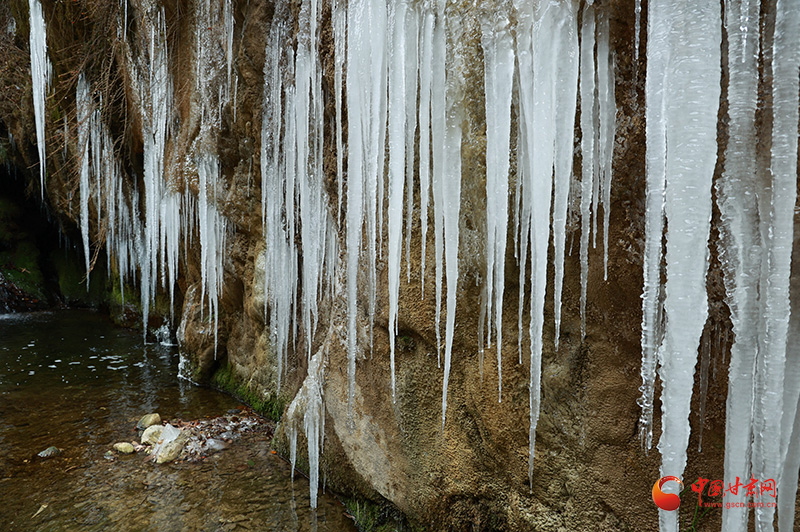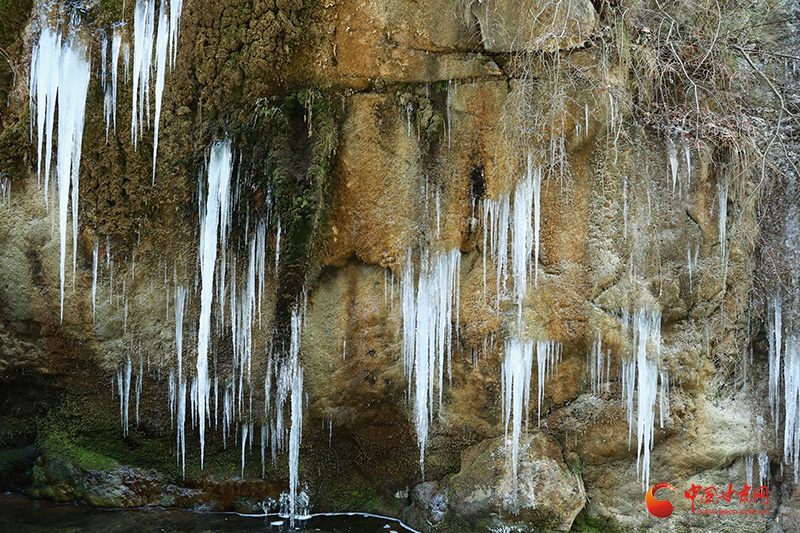 近日,在隴南市康縣王壩鎮,由于受低溫寒潮天氣的影響,王壩鎮何家莊風景區至大水溝村的大峽谷現冰瀑景觀,冰瀑形狀各異、冰掛晶瑩剔透、壯觀奇美,成為冬日里一道亮麗風景。