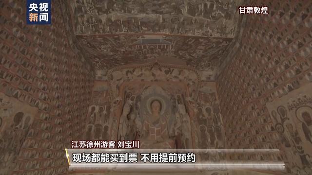 江蘇徐州游客 劉寶川:因為去年敦煌的旅游太熱了,駱駝都等紅綠燈,所以今年我想著冬天來可能人少一些。現場都能買到票,不用提前預約。