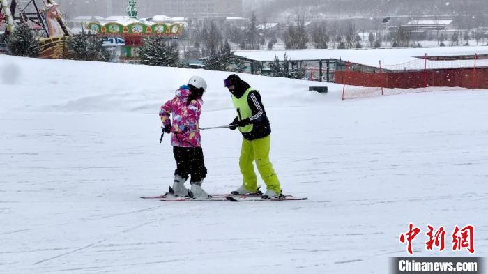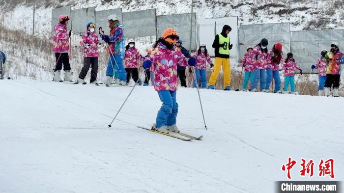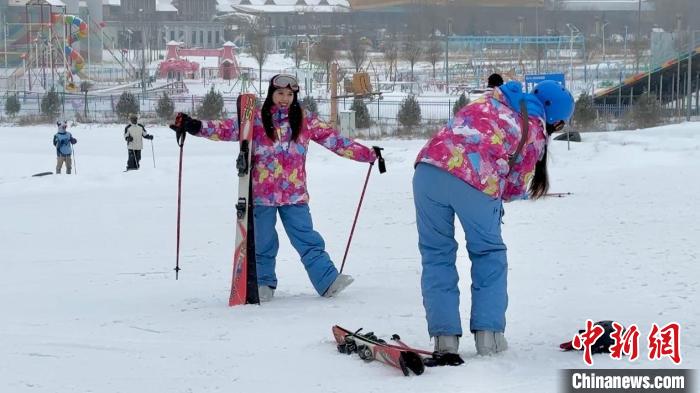 圖為滑雪教練對臺胞青年進行首次滑雪前的培訓。王牧雨 攝