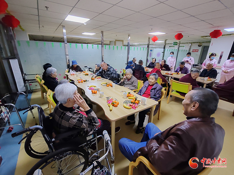 除夕,在平涼市老年養護院,老人們吃完早餐,就和工作人員一起貼窗花、做手工、掛燈籠、做年夜飯,度過一個溫馨祥和的春節。通訊員 柳靜霓 攝