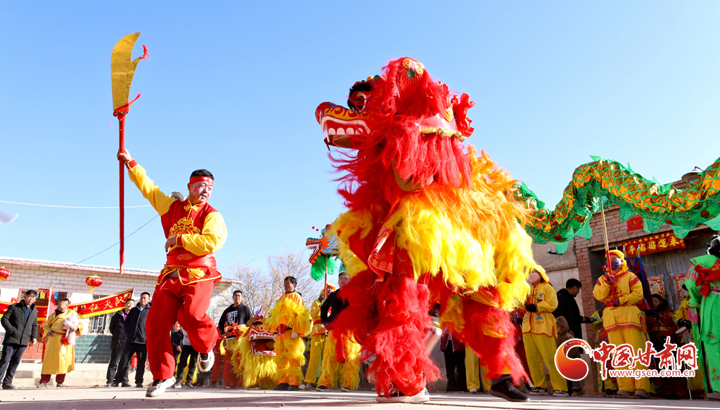 甘州區烏江鎮平原村“萬家和美”社火隊隊員們走街串巷到村民家中拜大年。 通訊員 王將 攝
