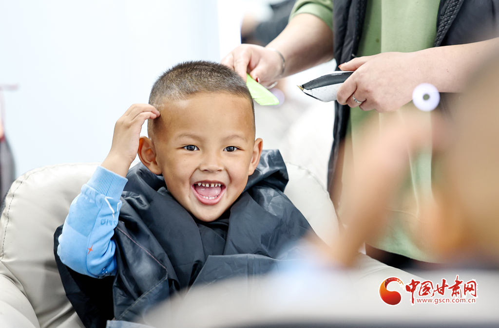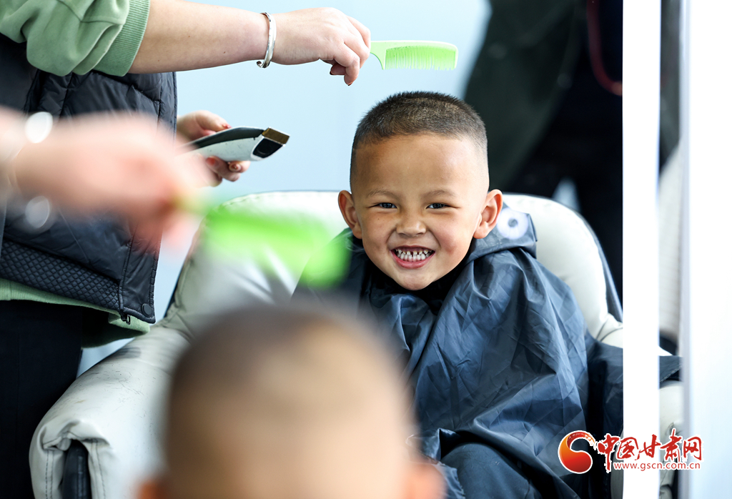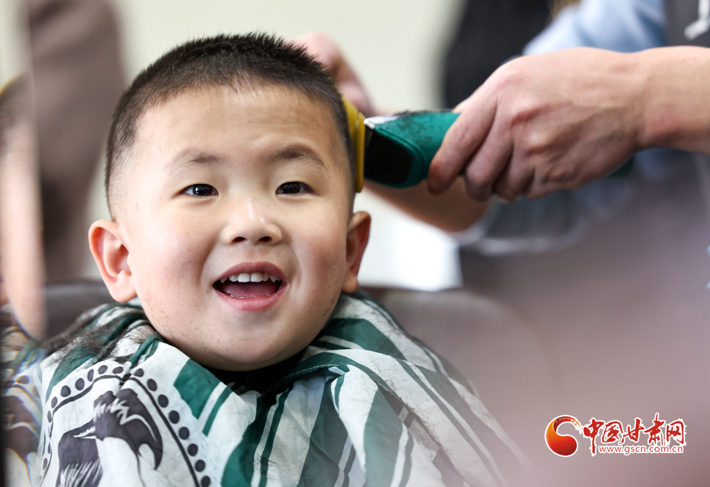 3月11日,在臨夏市一理發店內,理發師正在為一名小朋友“剃龍頭”。當日,是農歷二月初二,許多家長帶著孩子到理發店理發,希望孩子能健康成長,日后出人頭地,為新的一年討個好彩頭。