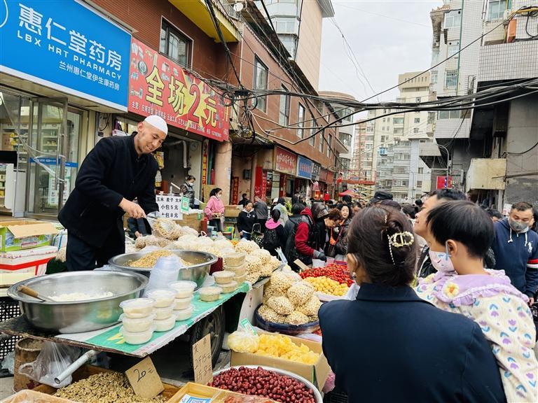 人間煙火味,最撫凡人心。說起煙火氣,小吃街巷一定算得上最有煙火氣的地方。華燈初上,蘭州正寧路夜市、大眾巷新光夜市、黃河食渡文化夜市等夜市人頭攢動,大家在各個小吃攤位前流連。甜醅子、灰豆子、釀皮、烤肉串、牛奶雞蛋醪糟、熱冬果、麻辣燙……蘭州小吃以獨有的風味,征服了游客的味蕾——不少網友直呼,原來蘭州不僅擁有一碗面,更有內涵豐富、口味獨特的硬核小吃,真是食客的“天堂”,誰不說一句蘭州的小吃好吃?