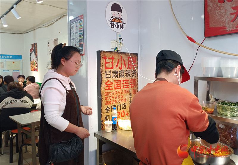 忙不完,根本忙不完,在天水麻辣燙最火爆的四合院,張明霞團隊的“甘小胖”麻辣燙也有一家實體店,正在為天南海北的游客煮麻辣燙。與其他店面不同,他們店還提供天水麻辣燙調料包,游客覺得好吃可以買回家自己做。