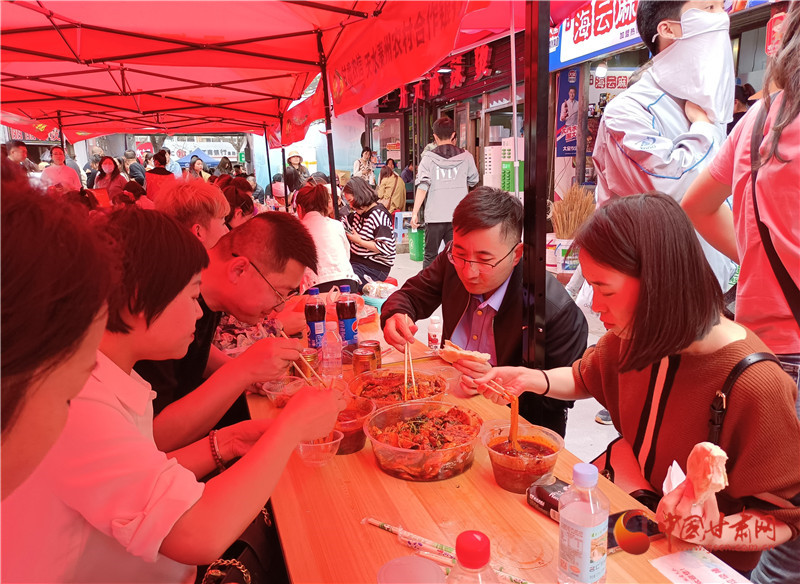 當日,甘肅省文旅廳和天水市共同舉辦的“甘肅麻辣燙及特色美食大PK”和“甘肅文創非遺市集展銷”活動繼續吸引大量游客。