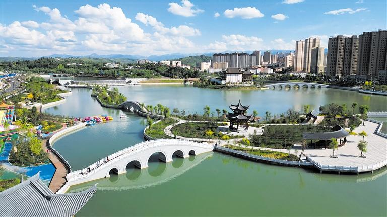 盛夏時節,和政縣龍泉湖公園綠樹環繞,風光秀麗,藍天白云與碧綠的湖水構成一幅美麗的生態畫卷。新建的龍泉湖公園集綠道、觀光、旅游等多功能于一體,成為居民和游客休閑娛樂的好去處。