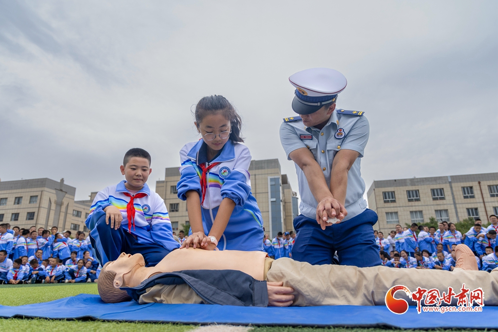 消防救援人員教學生進行心肺復蘇
