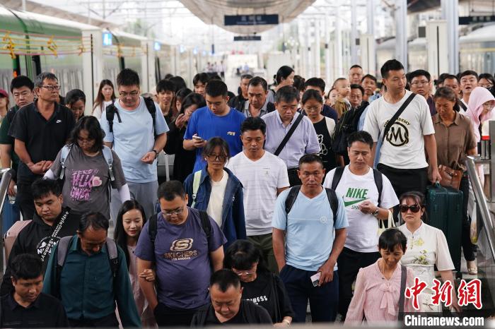 8月31日,云南昆明,列車抵達(dá)昆明站,旅客走出站臺。當(dāng)日,為期62天的中國鐵路暑運(yùn)結(jié)束。中新社記者 劉冉陽 攝