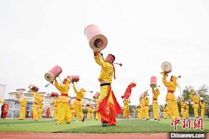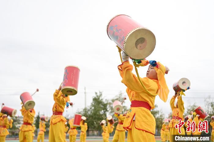 9月9日,甘肅省蘭州市皋蘭縣三川口學(xué)校學(xué)生練習(xí)蘭州太平鼓。近年來,皋蘭縣將國家級非物質(zhì)文化遺產(chǎn)蘭州太平鼓納入各中小學(xué)課后服務(wù)內(nèi)容,成立中小學(xué)太平鼓隊13支,定期邀請非遺傳承人走進(jìn)校園,進(jìn)行傳統(tǒng)文化授課和培訓(xùn),使學(xué)生親身感受中華優(yōu)秀傳統(tǒng)文化的魅力。蘭州太平鼓舞已有六百余年的歷史,素有“天下第一鼓”之稱,2006年被列入中國第一批非物質(zhì)文化遺產(chǎn)名錄。中新社記者 九美旦增 攝