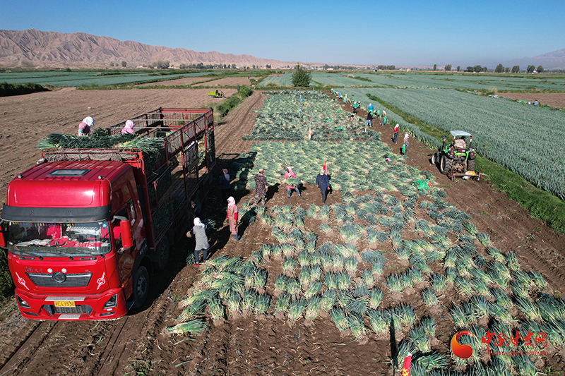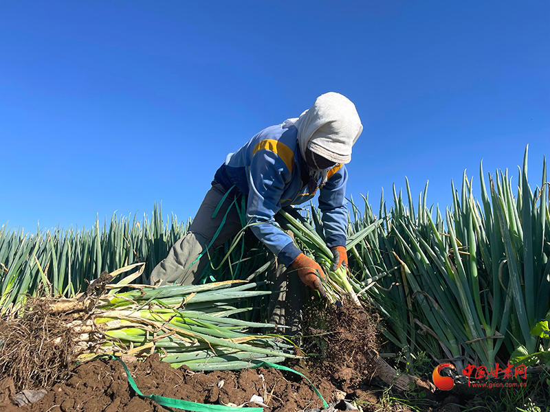 金秋時節,山丹縣清泉鎮南關村的260畝大蔥迎來了豐收。