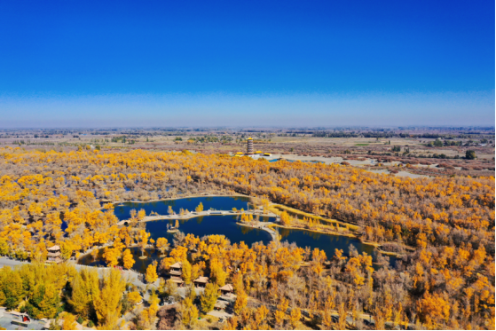 原標題:寶藏甘肅|碧云天黃葉地 在金塔胡楊林領略絕美秋色