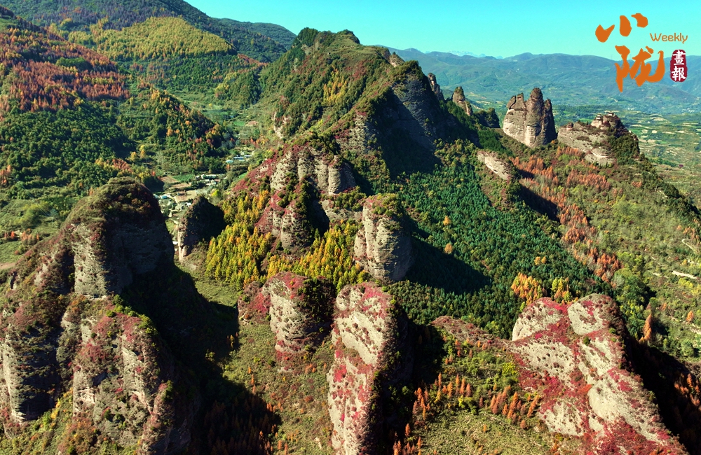 一覽眾山小,那原本就斑斕多彩的座座山巒,此刻更是被秋天賦予了更加豐富的色彩,像披上了一層絢麗的衣裳。