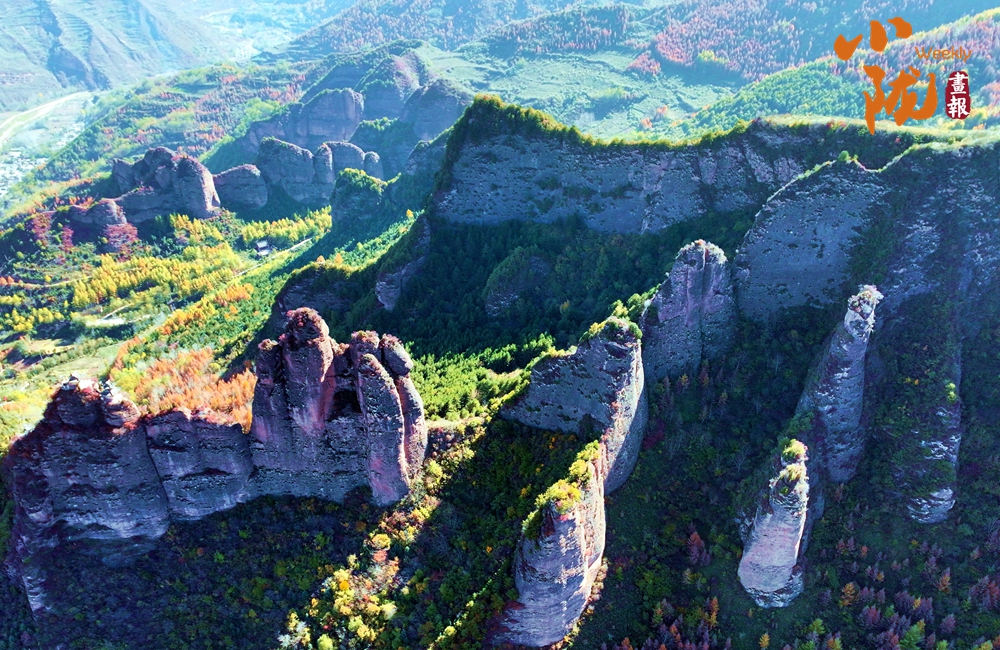從空中俯瞰,牛頭山險(xiǎn)壑錯(cuò)綜,崖高十余丈,四面凌空,直立如削,呈現(xiàn)陽(yáng)剛挺拔之勢(shì)。