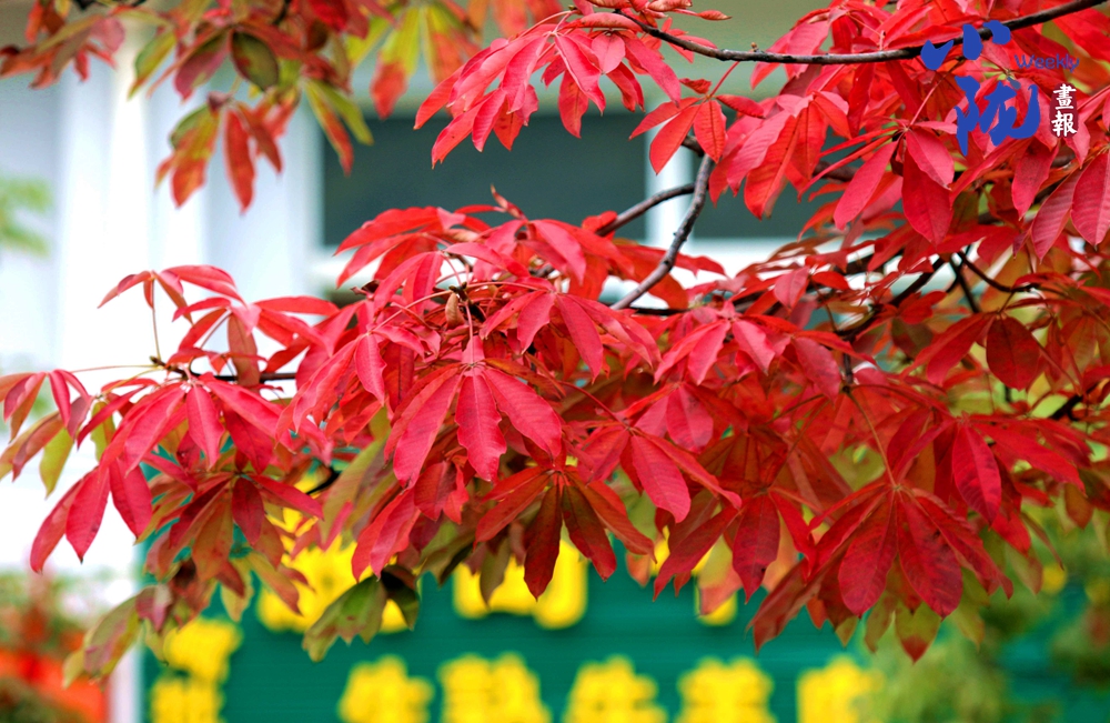 秋高氣爽,街道上,紅葉滿枝,熱情似火,在陽光下搖曳生姿,給城市增添了無比生動的秋韻。