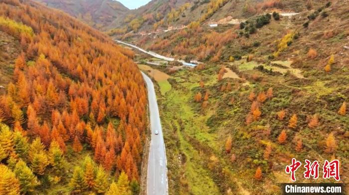 初冬時節,甘肅省隴南市武都區公路旁仍然一派秋日景象,黃紅綠相間的公路甚是好看,公路在暖陽的擁抱下,緩緩鋪展向遠方。成濤濤 攝