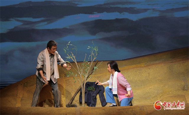 中國甘肅網11月13日訊(西北角·中國甘肅網記者 任磊)12日晚,由甘肅省文化和旅游廳與陜西省文化和旅游廳聯合主辦的“春綠隴原”文藝精品交流演出拉開帷幕,首場演出秦腔現代劇《生命的綠洲》在黃河劇院精彩上演,為金城的戲迷們呈現出毛烏素沙漠從“千年沙漠”到“萬里綠洲”的人類生態奇跡故事。