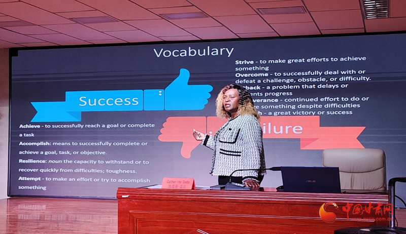 外籍教師Catherine Seda(凱瑟琳-塞達)以其深厚的英語專業素養和生動的學習和生活情境,為在場的師生們帶來了一場語言學習盛宴,激發了同學們對英語學習的濃厚興趣。