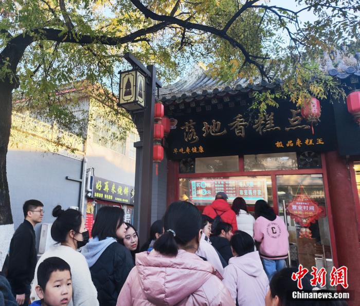 漁陽(yáng)古街上,游客正排隊(duì)購(gòu)買一家“網(wǎng)紅”棗糕。劉越 攝
