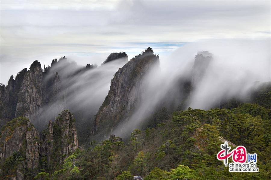 每年11月是黃山瀑布云頻頻出現的季節,經過前日的降雨和降溫,連續多天都出現了氣勢磅礴的“瀑布云”景觀。