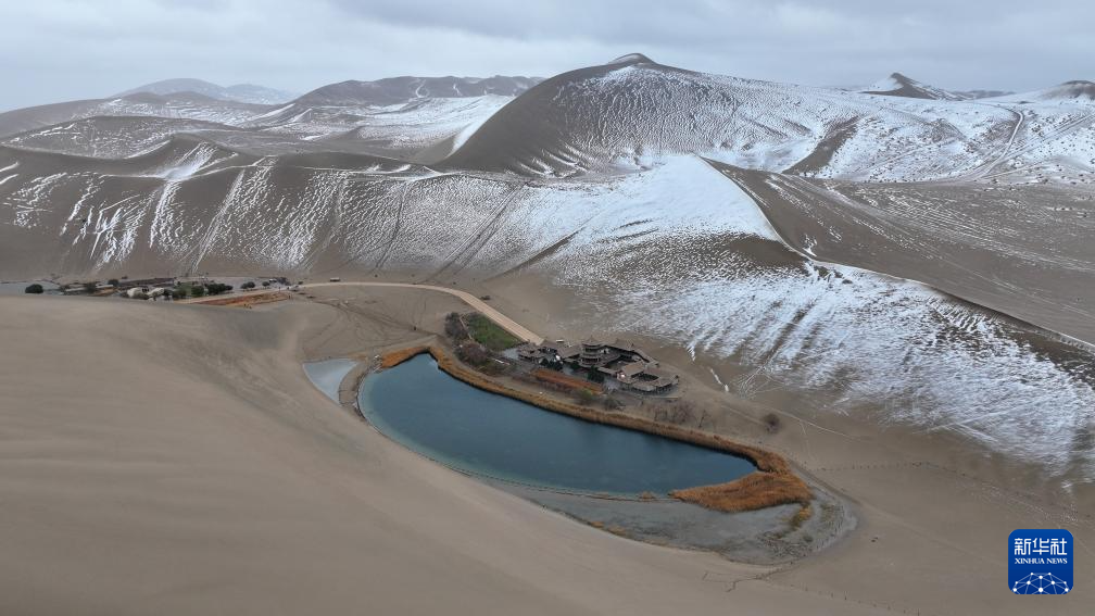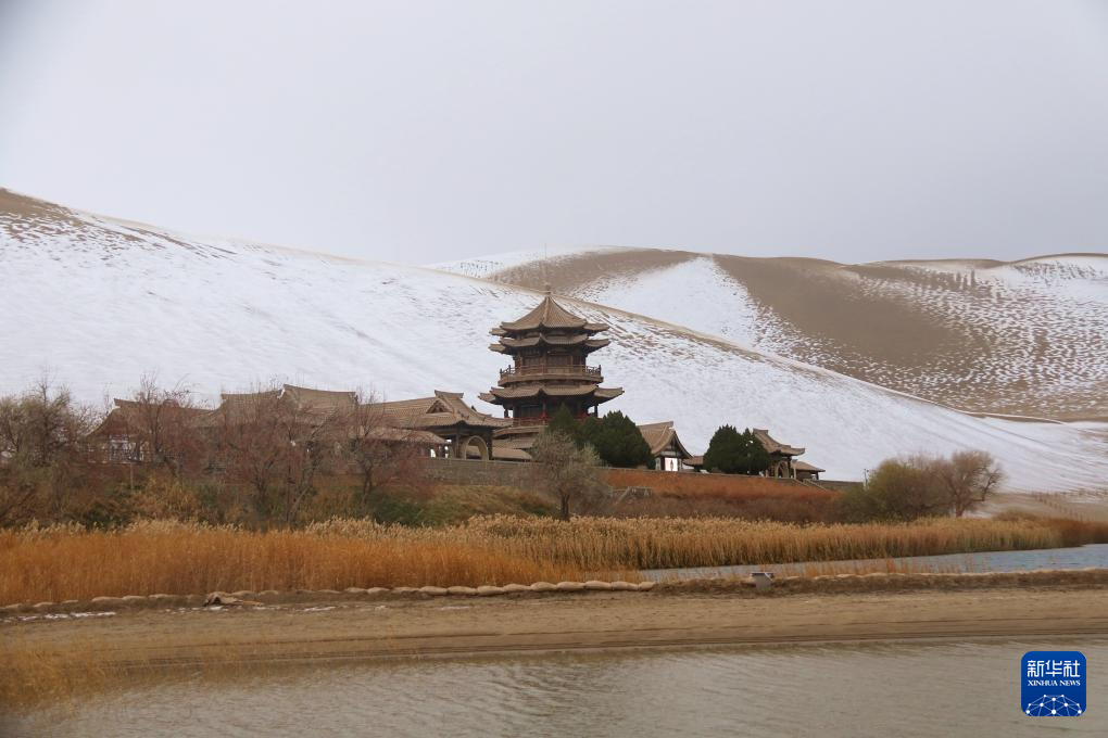 這是11月23日拍攝的敦煌市鳴沙山月牙泉景區雪景。新華社發(張曉亮 攝)