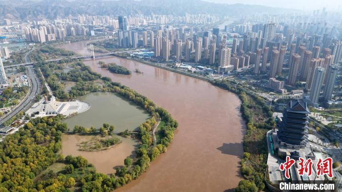 2024年10月31日,黃河蘭州段兩岸的斑斕秋色。 (無人機(jī)照片) 九美旦增 攝