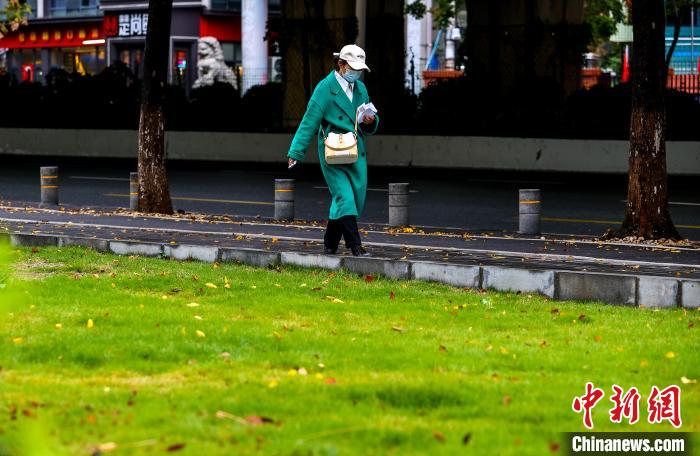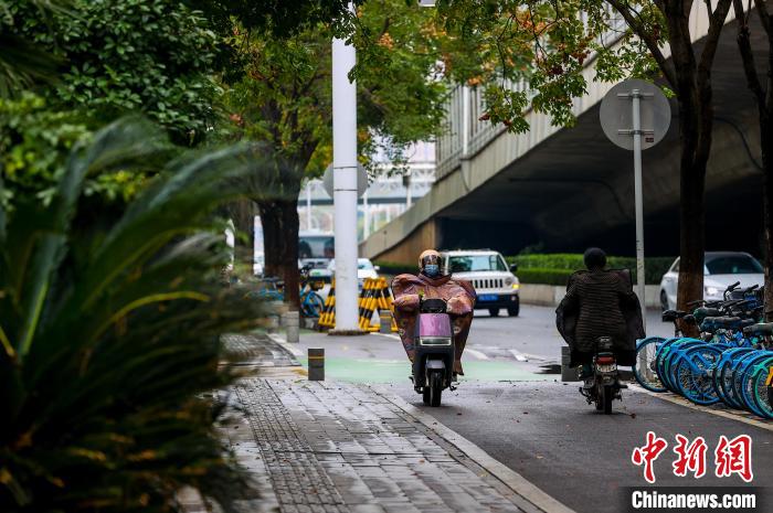11月25日,市民在街頭出行。當(dāng)日,武漢受寒潮天氣影響,氣溫下降明顯。武漢市氣象臺24日18時(shí)27分發(fā)布寒潮藍(lán)色預(yù)警信號,受較強(qiáng)冷空氣影響,預(yù)計(jì)24日至26日,武漢最低氣溫降幅達(dá)7℃~9℃。中新社記者 張暢 攝
