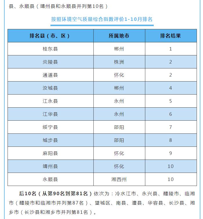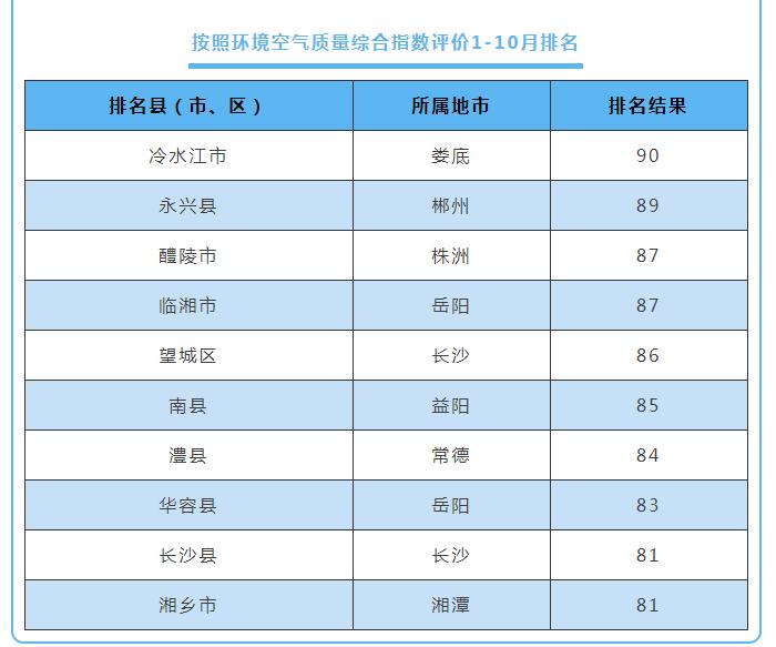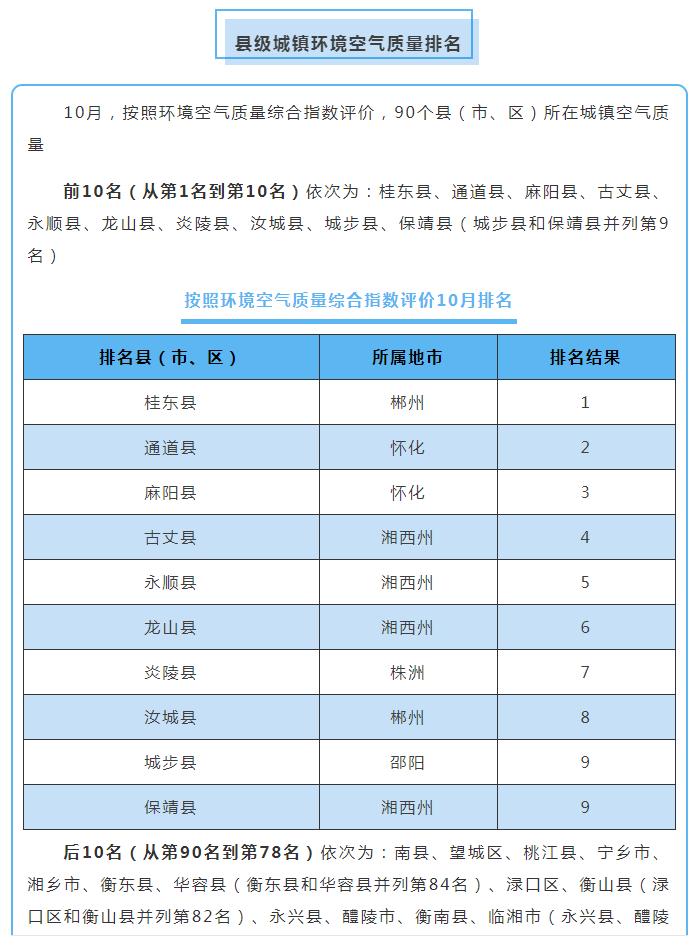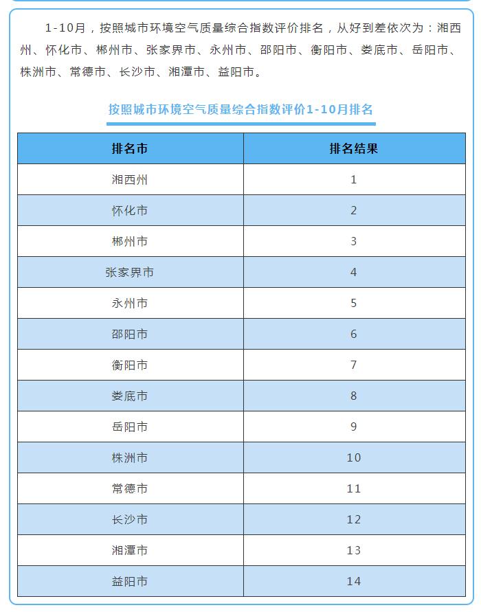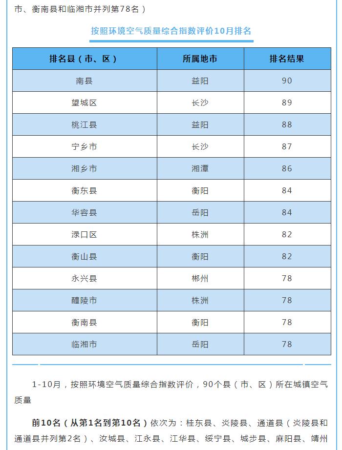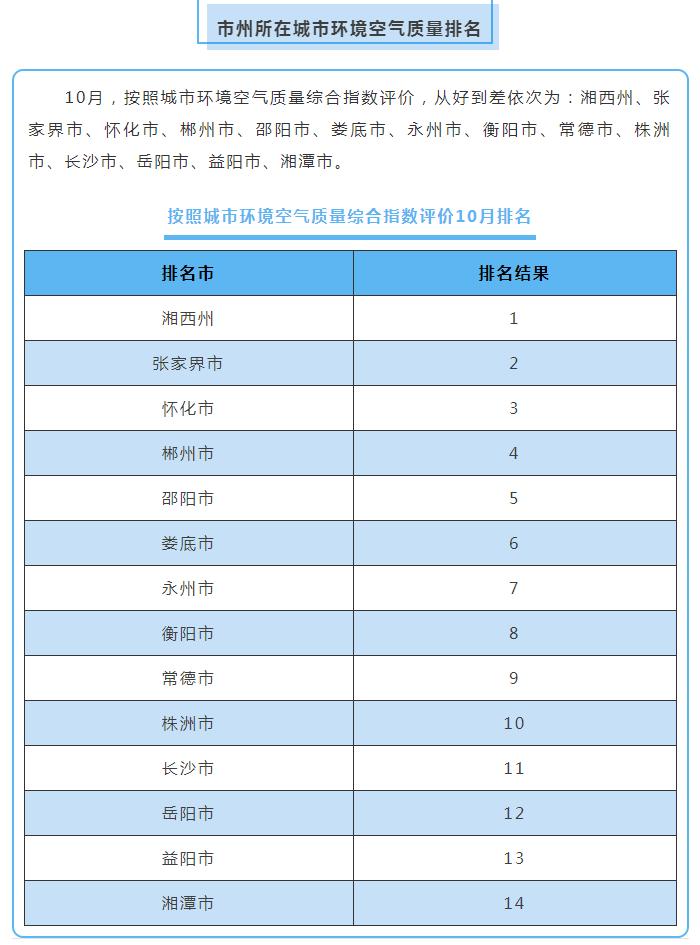 原標題:10月湖南環境空氣質量:湘西張家界位居前茅