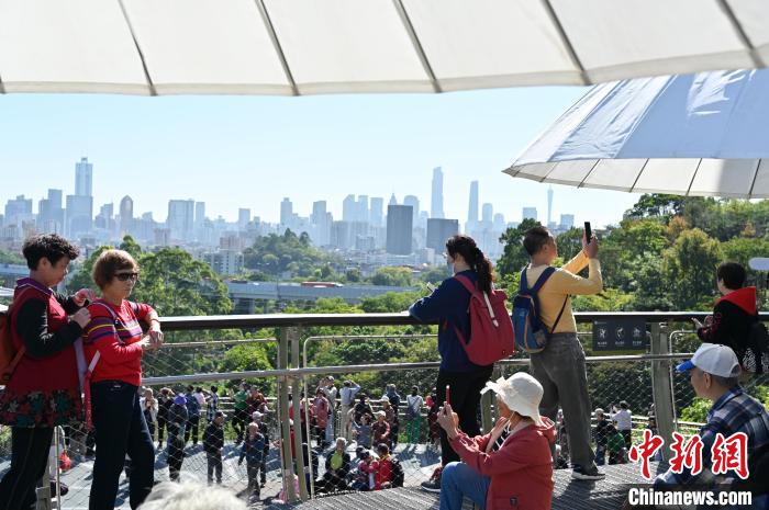 11月29日,廣東廣州,云蘿植物園正式開園,游客在園區遠眺廣州塔等城市景觀。中新社記者 陳楚紅 攝