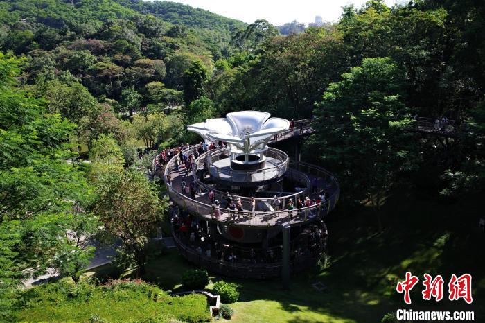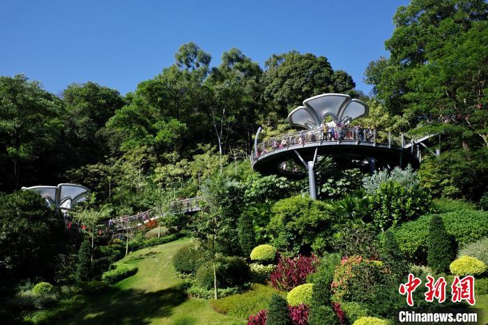 11月29日,廣東廣州,云蘿植物園正式開園,游客漫步在空中園林棧道“木棉道”。中新社記者 陳楚紅 攝