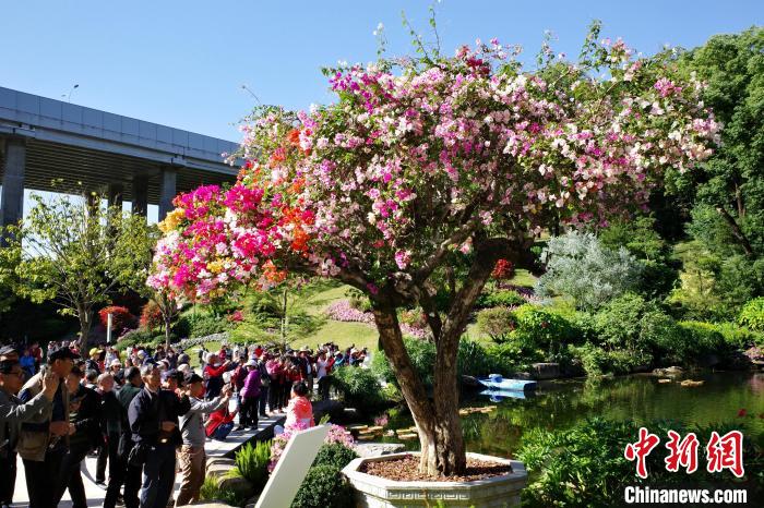 11月29日,廣東廣州,云蘿植物園正式開園,簕杜鵑專類園吸引游客賞花拍照。中新社記者 陳楚紅 攝