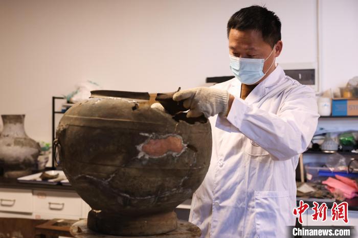 “青銅器和簡牘不一樣,它需要相對干燥的環境來保存,由于墓室坍塌,很多出土的青銅器因受擠壓破碎、變形,還有很多銹跡和污物已經掩蓋了該件器物的原本樣貌。”趙明輝表示,修補青銅器需要將一塊塊碎片進行分類、比對、拼接等,如有變形還需先整形,隨后將其焊接,是一件不折不扣的“精細活”。