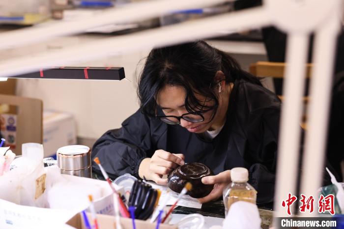 江西省文物考古研究院的丁金果也是“00后”,且參與了新展出漆器的修復。她表示,海昏侯墓出土的漆器在水中浸泡了許久,大多數漆器已經嚴重變形、破碎。經過清洗、脫水、矯形、粘接、髹漆等諸多步驟,這些漆器便能再現原貌,但也需要大量的時間去修復。