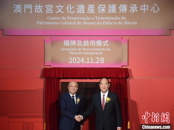 由澳門特區政府與中國文化和旅游部(文旅部)合作籌建的“澳門故宮文化遺產保護傳承中心”(下稱“中心”)28日下午舉行揭牌及啟用儀式,澳門特區行政長官賀一誠與故宮博物院院長王旭東共同為中心揭牌。