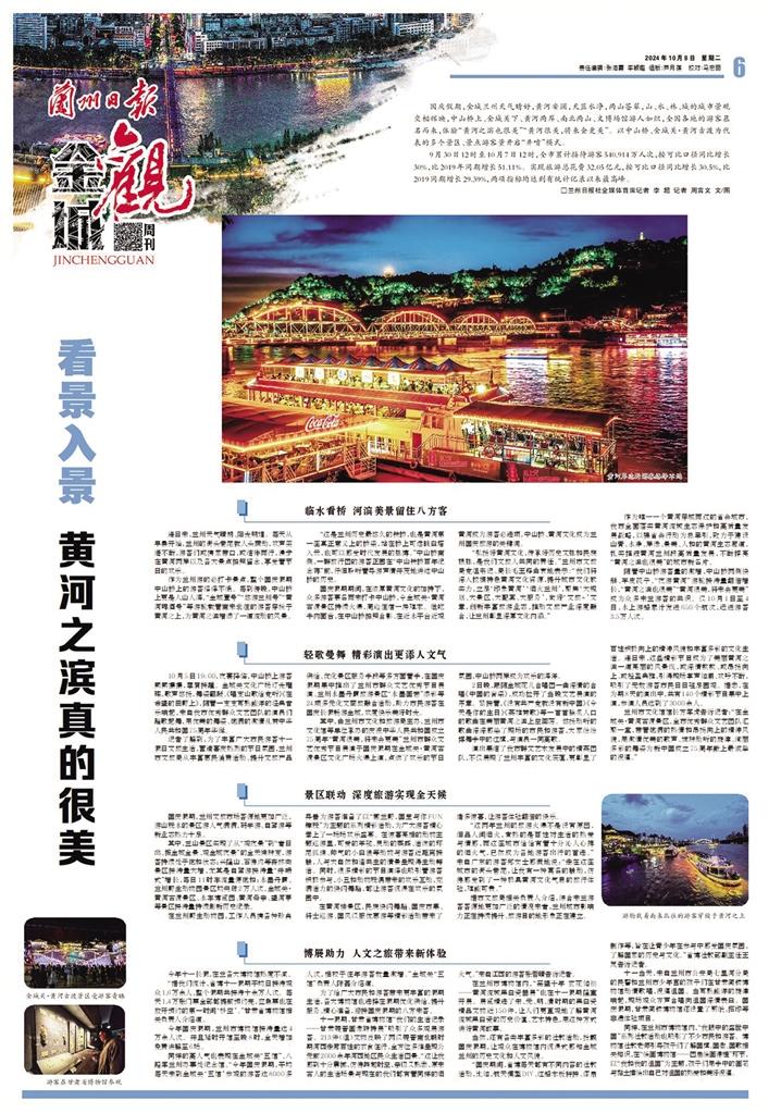 今年國慶假期,以中山橋、金城關·黃河古渡為代表的多個景區、景點游客量開啟“井噴”模式。僅10月1日至3日,全市累計接待游客超220萬人次,實現旅游消費超12億元,兩項指標均超歷史峰值。