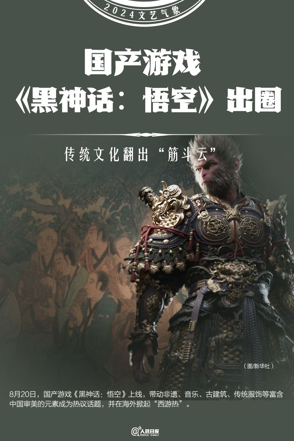 今年8月20日,國產單機游戲《黑神話:悟空》上線,24小時內就在全球最大的數字游戲發行平臺上賣出超過300萬份,同時在線玩家最高超過222萬,成為該平臺歷史數據中排名第一的付費游戲。游戲在海外掀起“西游熱”,不少玩家一邊玩游戲一邊研究《西游記》“補課”,游戲中的非遺音樂、山西古建筑、傳統服飾等富含中國審美的元素也成為熱議話題。今年年底,《黑神話:悟空》斬獲多項國際大獎。