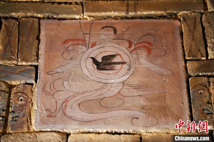 1月10日,在甘肅省敦煌市敦煌博物館展陳的《伏羲畫像磚》。該畫像磚在1991年12月出土于佛爺廟墓群,畫像里的伏羲呈現人首蛇身狀。中新社記者 李亞龍 攝