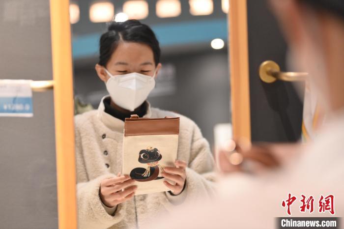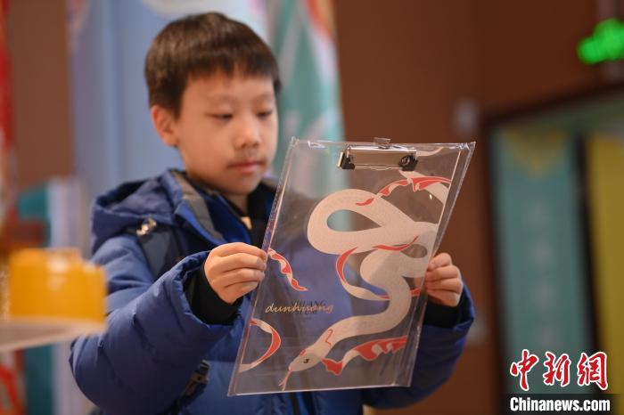 1月10日,在甘肅省敦煌市敦煌博物館內,游客挑選“蛇”元素文創產品。隨著農歷乙巳蛇年臨近,敦煌博物館內具有敦煌文化的“蛇”元素文創產品漸熱。中新社記者 李亞龍 攝