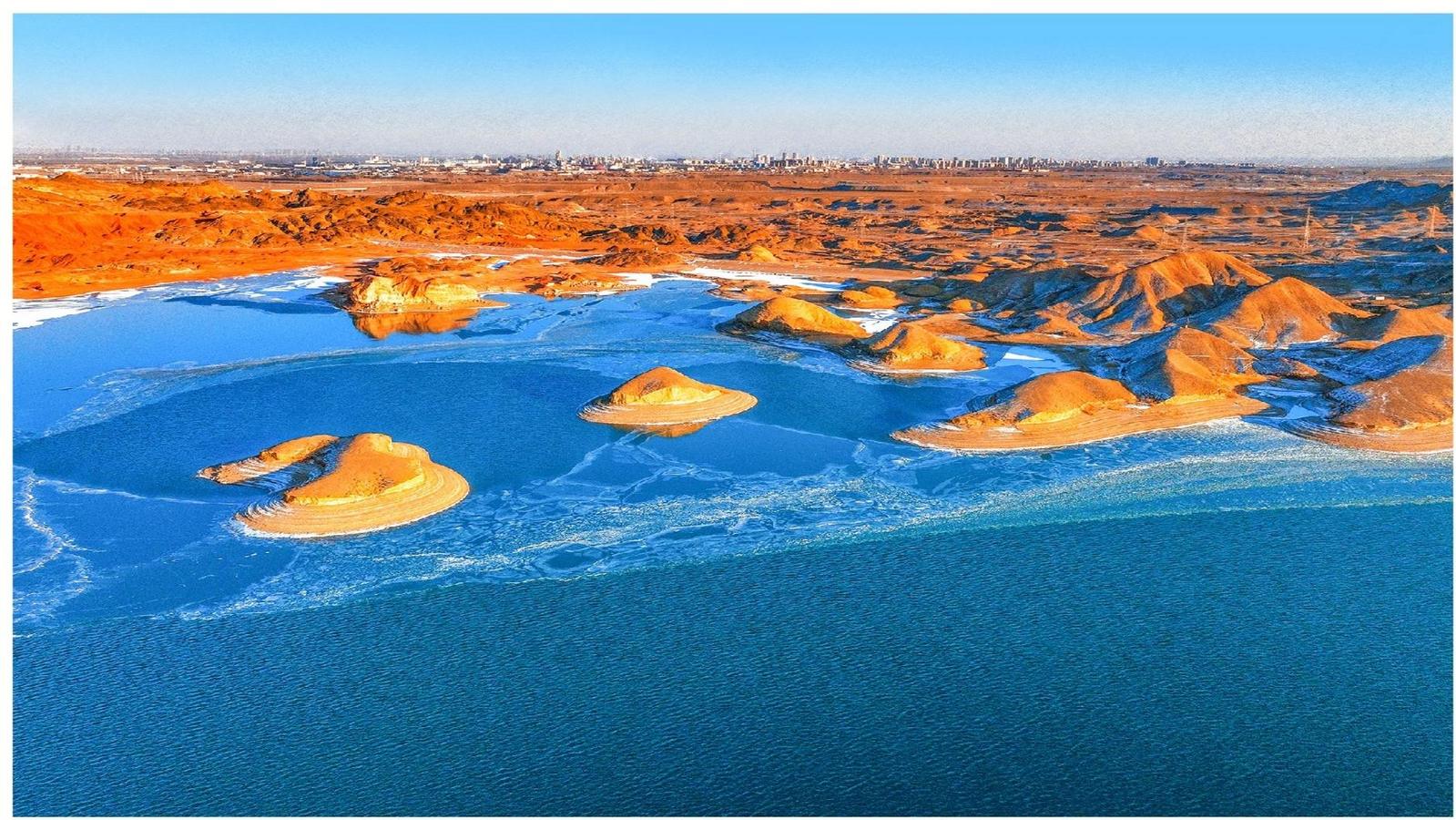 中國甘肅網2月8日訊 據嘉峪關日報報道(融媒體中心記者 李巍 攝)冬日的黑山湖,如鑲嵌在茫茫戈壁中的“天鏡”,與湛藍天色、夕陽下的丹霞地貌渾然一體,美得像一幅油畫。