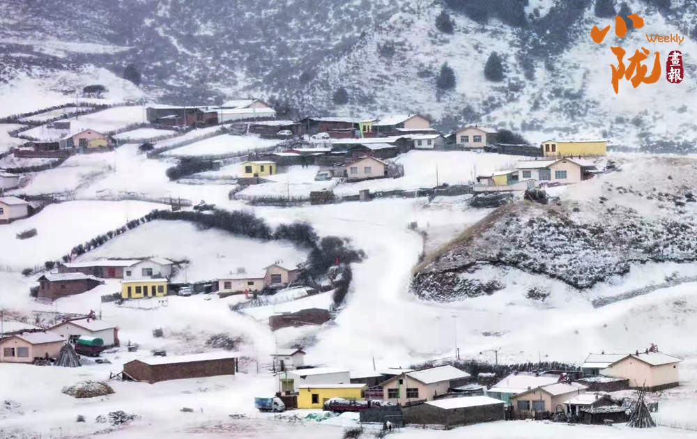 初春的碌曲縣,雪覆蓋了山林,覆蓋了藏寨,山川草場變成了純凈無暇的世界。