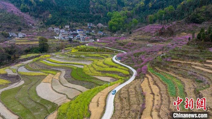 3月15日,在廣西田林縣浪平鎮浪平村,滿山盛開的桃花美景如畫。黃數情 攝